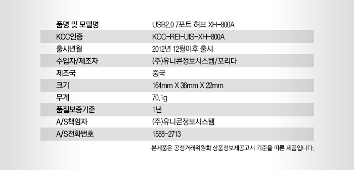 유니콘 XH-800A 블랙 USB2.0 7포트 유전원 허브 포트별 스위치