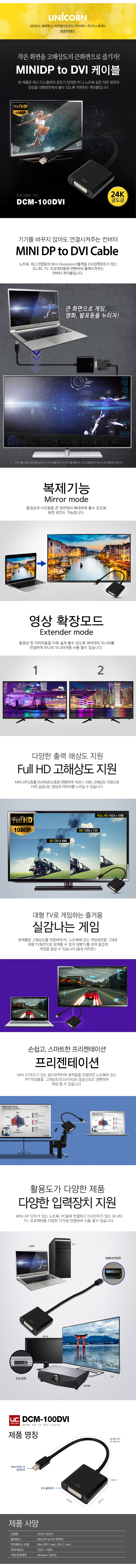 유니콘 Mini DisplayPort 1.1 to DVI 컨버터