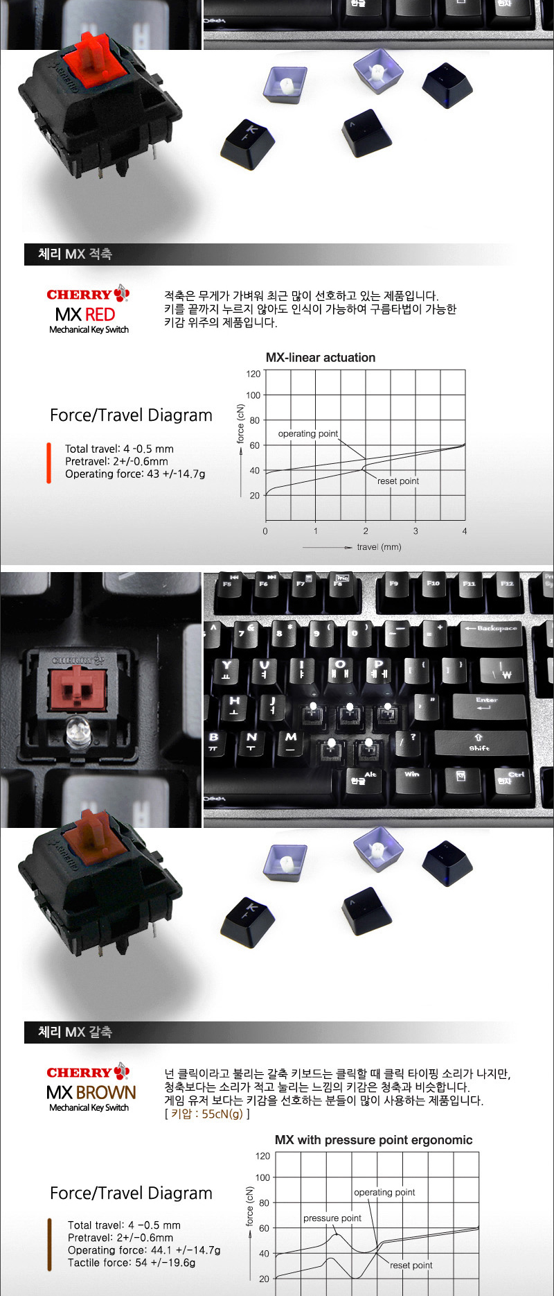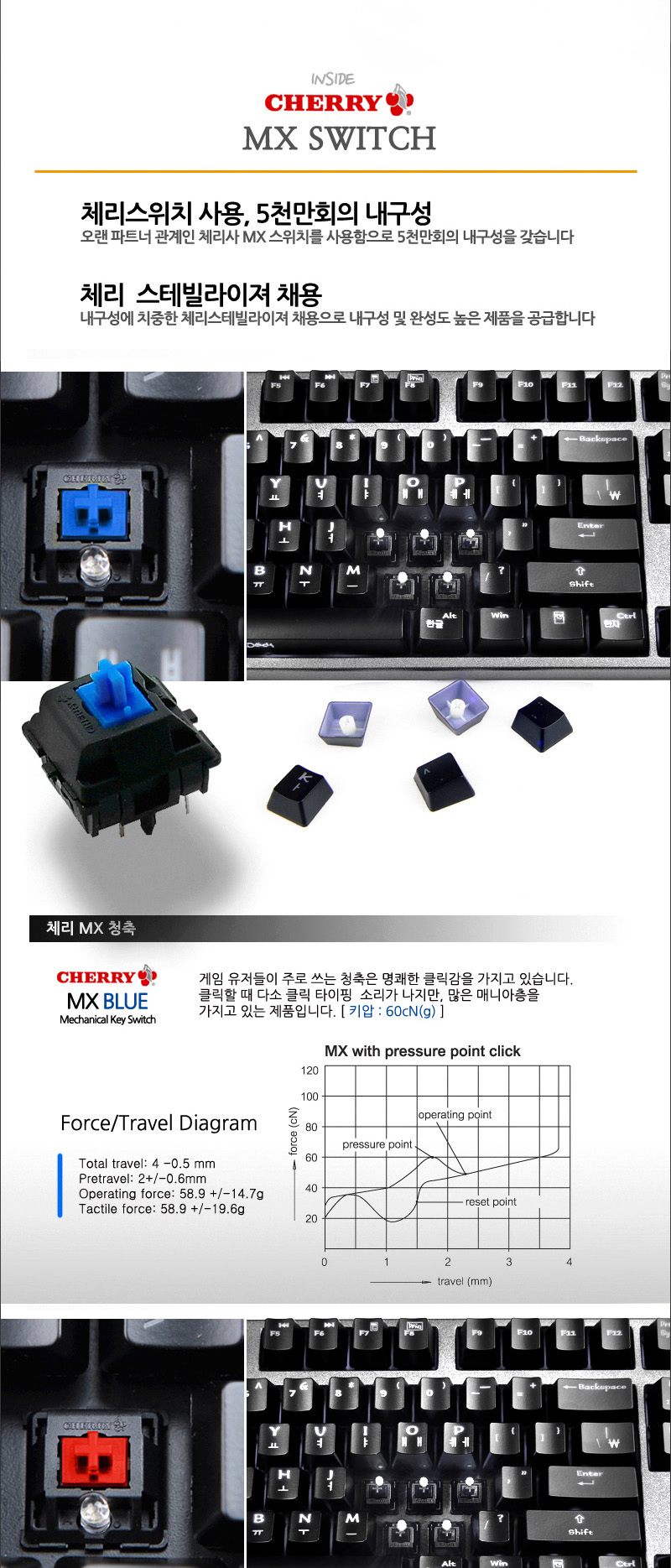 키보드(일반) / 유선 / USB / 기계식 / 스위치: 체리 / 게이밍, 멀티미디어 / H/W 매크로 / 무한입력 / 1ms