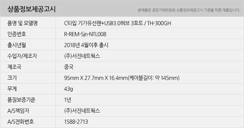 TH-300GH C타입 유선랜카드+USB3.0 허브