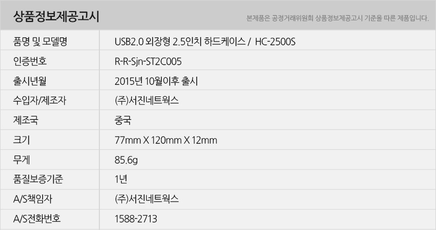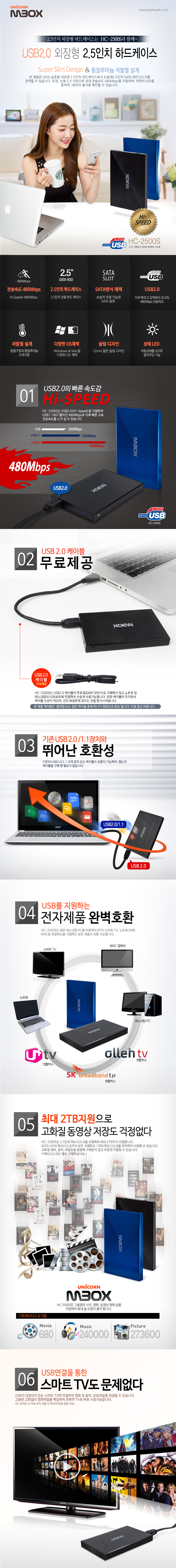 - 유니콘 HC-2500S USB2.0 256GB SSD외장하드 / HC-2500S +SSD 256GB