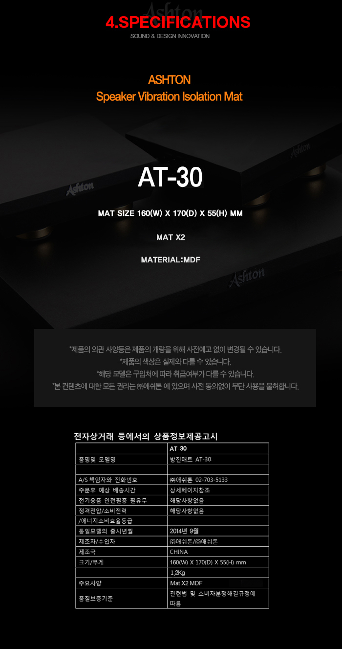 ASHTON 방진매트 스피커받침대 AT-30 정품 / AT-30