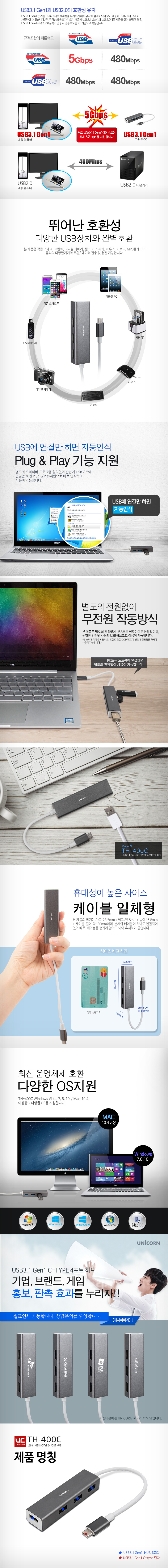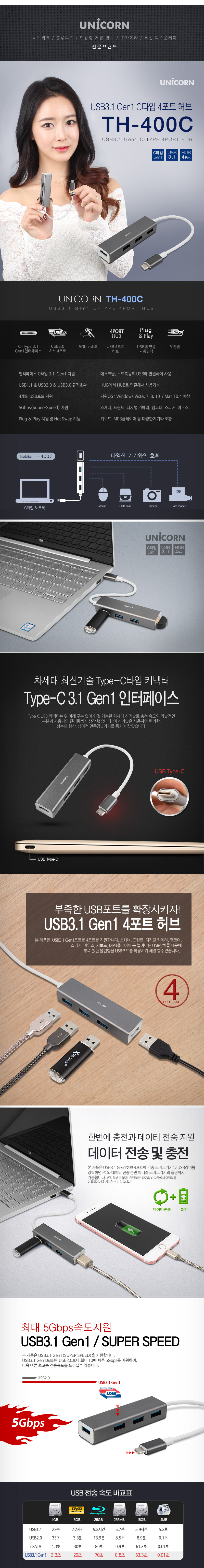 TH-400C USB3.1 Gen1 C-TYPE 4포트 USB허브 무전원